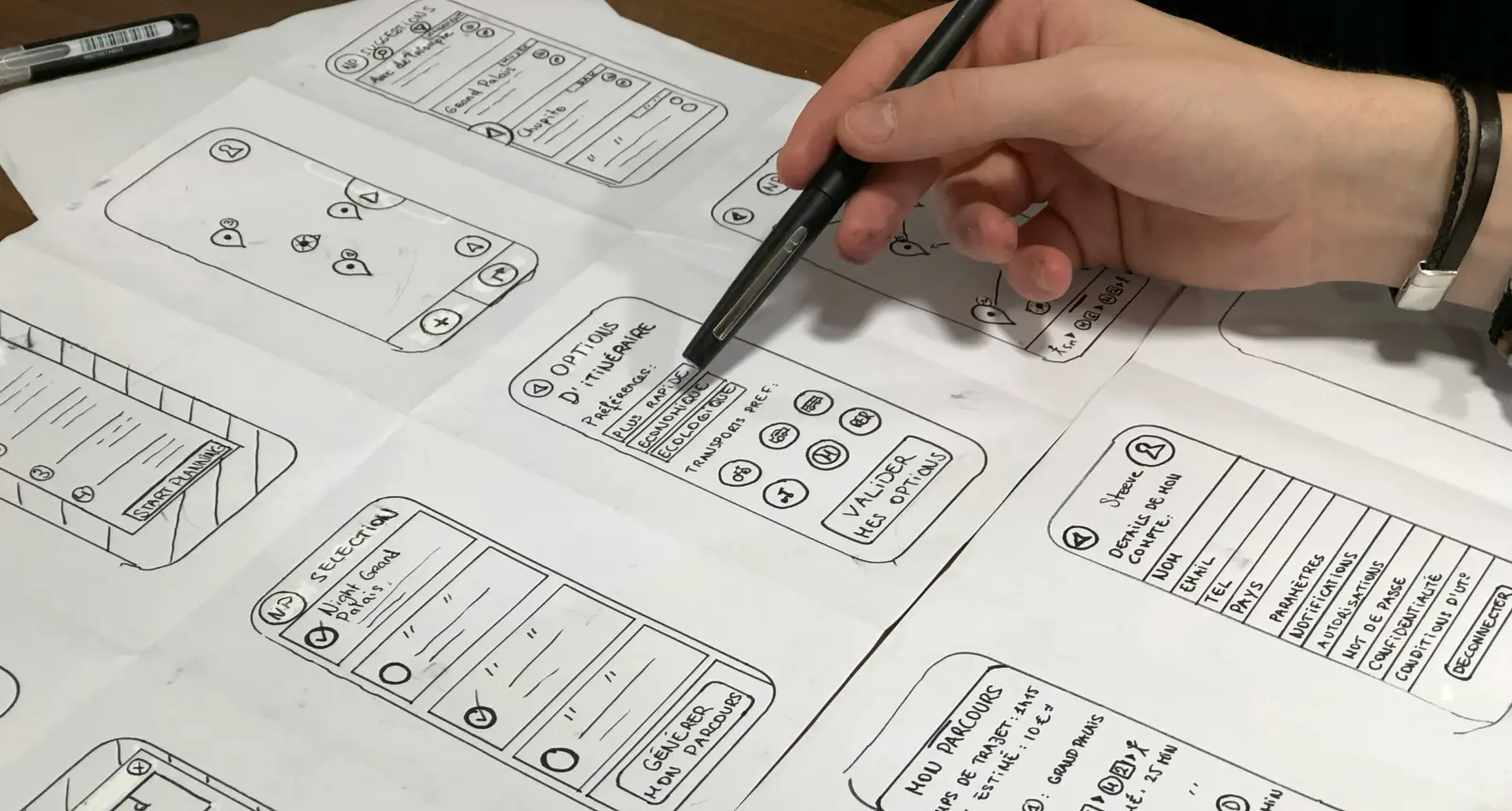 - A user journey map with annotated pain points.